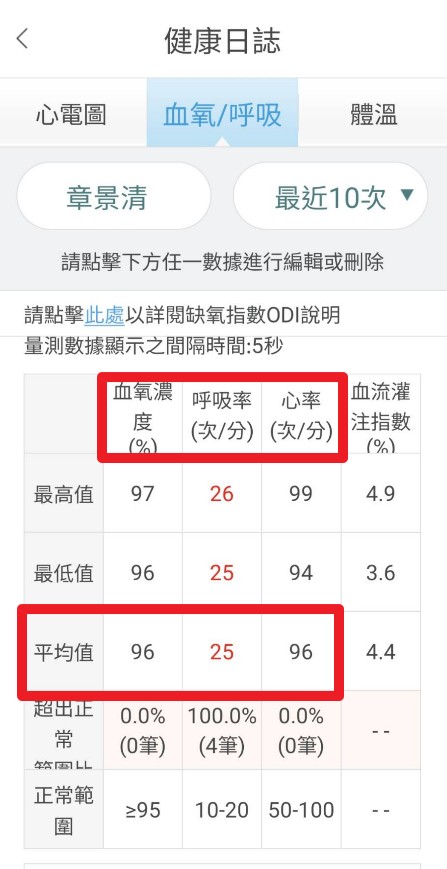 7.「血氧/呼吸/心率」點[編輯]/[詳情]
