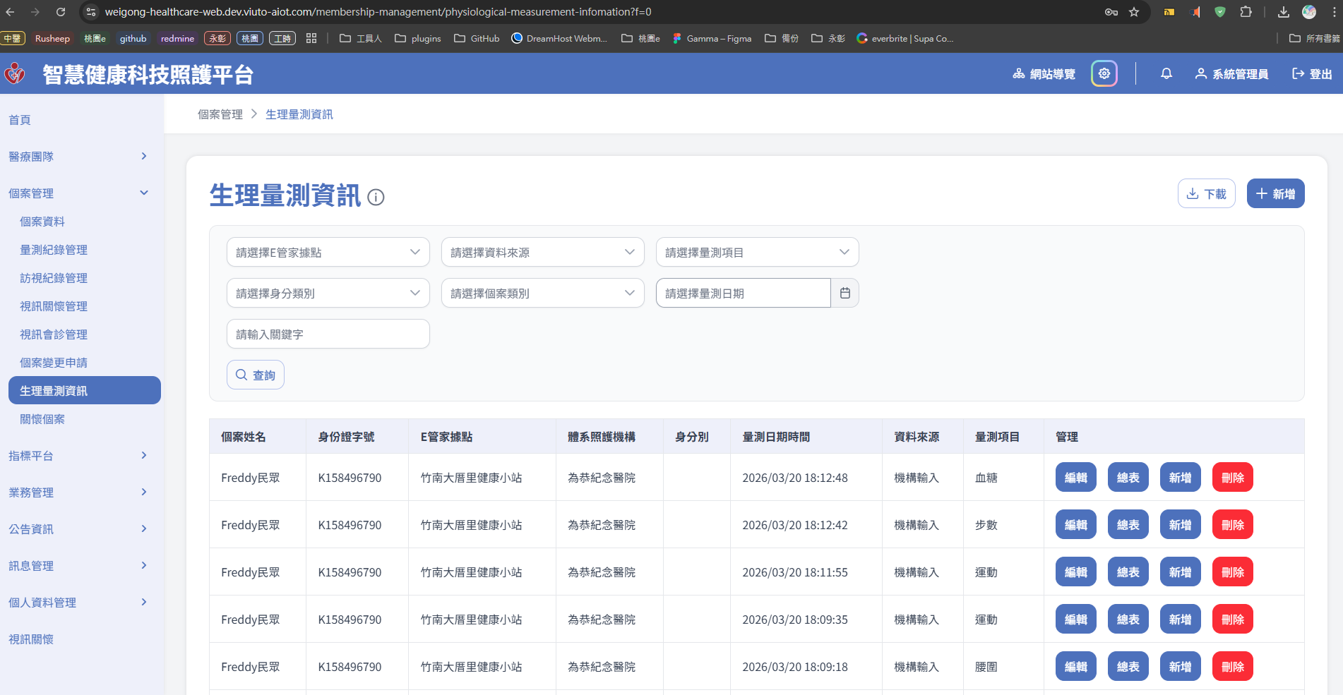 環境:https://weigong-healthcare-web.dev.viuto-aiot.com/