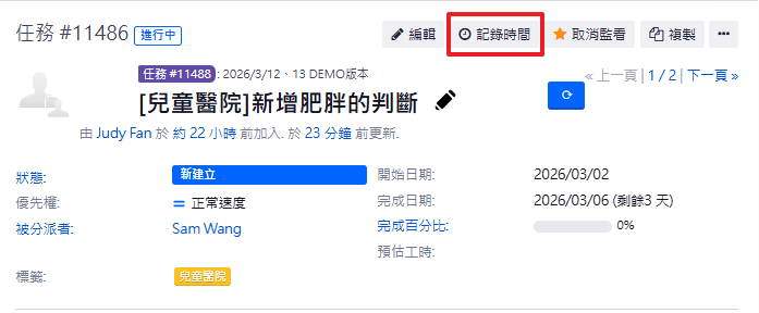 2. 填寫redmine編號,e.g.開會可以固定都填 #11487